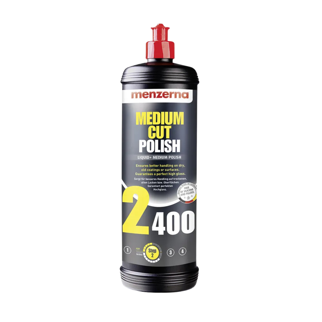 Para signos de uso y arañazos moderados. Pulimento de corte medio de Menzerna, para obtener una superficie perfecta con un brillo reluciente. Especialmente adecuado para recubrimientos ligeros en automóviles.