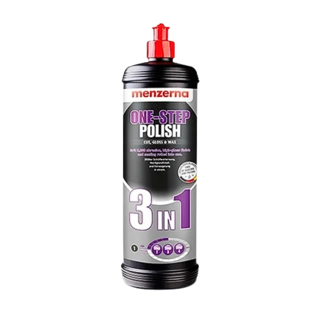 Menzerna 3 en 1 es un Polish de corte medio capaz de eliminar rayas de uso normal o lija grado 3000 y 5000, como abrillantador elimina marcas de borla y pulido y finalmente protege con una capa sello de cera, puede ser usado para Pulir-Abrillantar con pulidoras Rotativas y Rotorbitales y usado como Cera, puede ser aplicado a mano inclusive, es base agua libre de silicones, solo Menzerna podía crear un producto tan revolucionario !!.