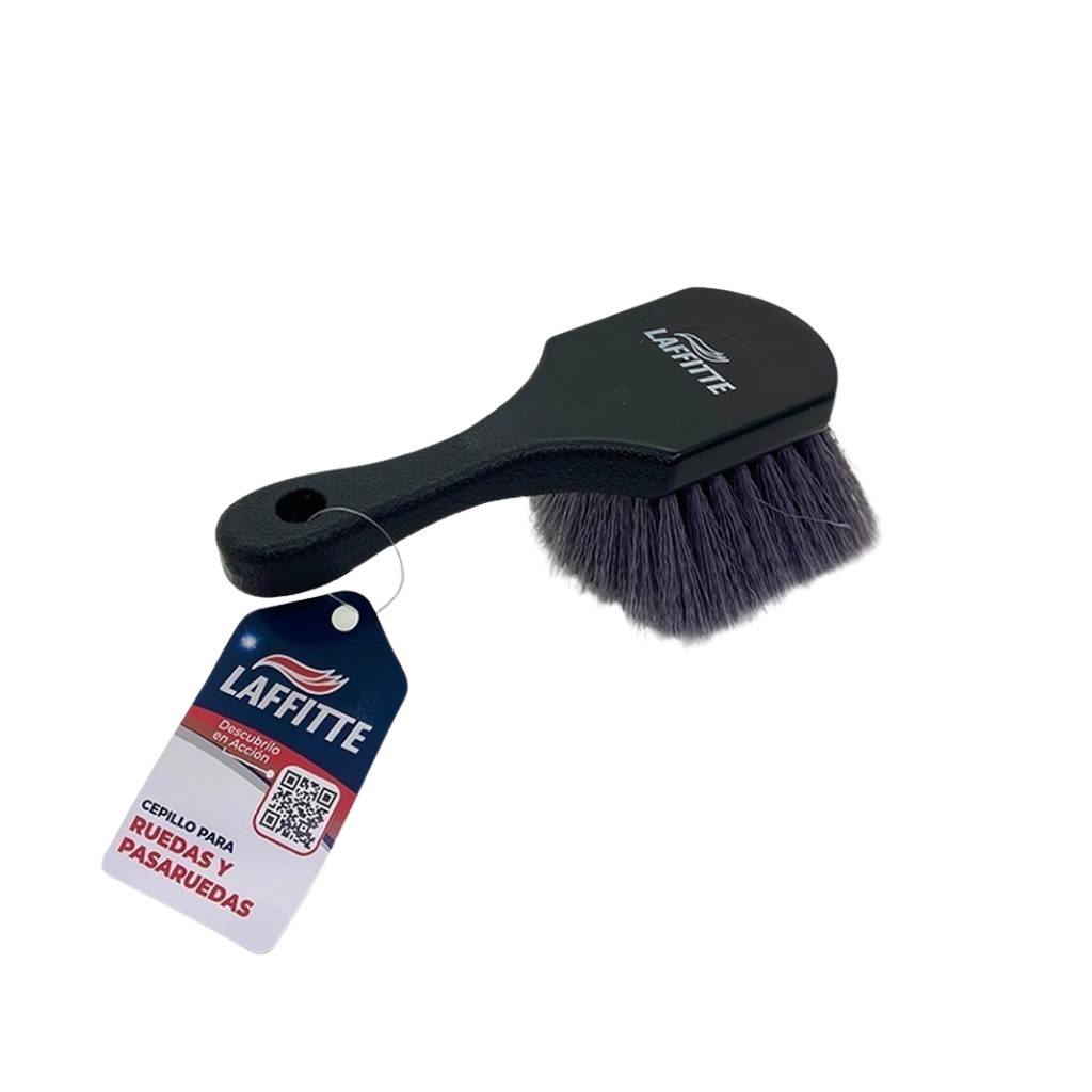 Se caracteriza por sus cerdas suaves de plástico, que permiten una limpieza efectiva sin dañar la superficie de las llantas. Además, su diseño ergonómico, con mango corto, facilita el acceso a zonas difíciles y proporciona un agarre cómodo.