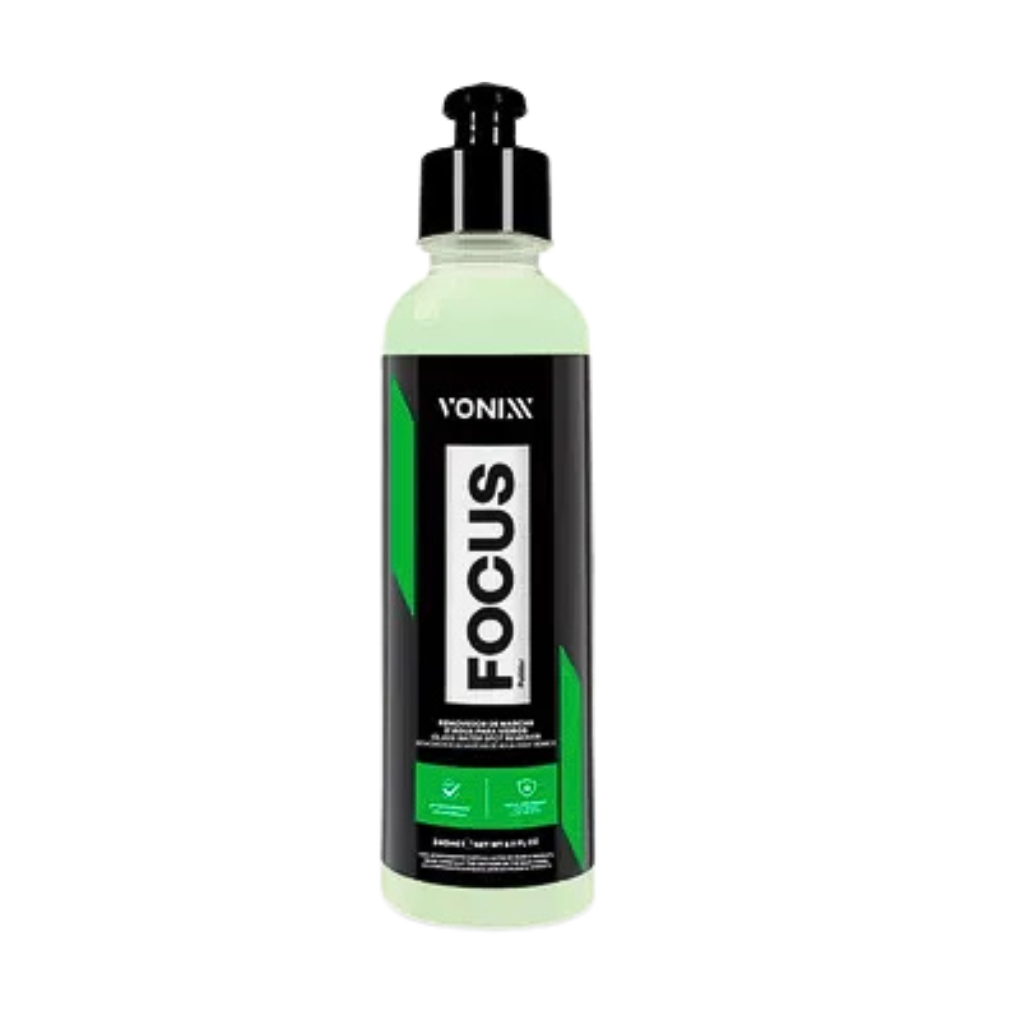 Focus es un potente removedor de marcas de agua en vidrios y espejos. El producto es efectivo para eliminar marcas de agua en vidrios de automoviles, mamparas de ducha, espejos o cualquier tipo de vidrio, sin riesgo de causar manchas. A diferencia de los productos acidos tiene un PH equilibrado y puede ser utilizado con total seguridad.