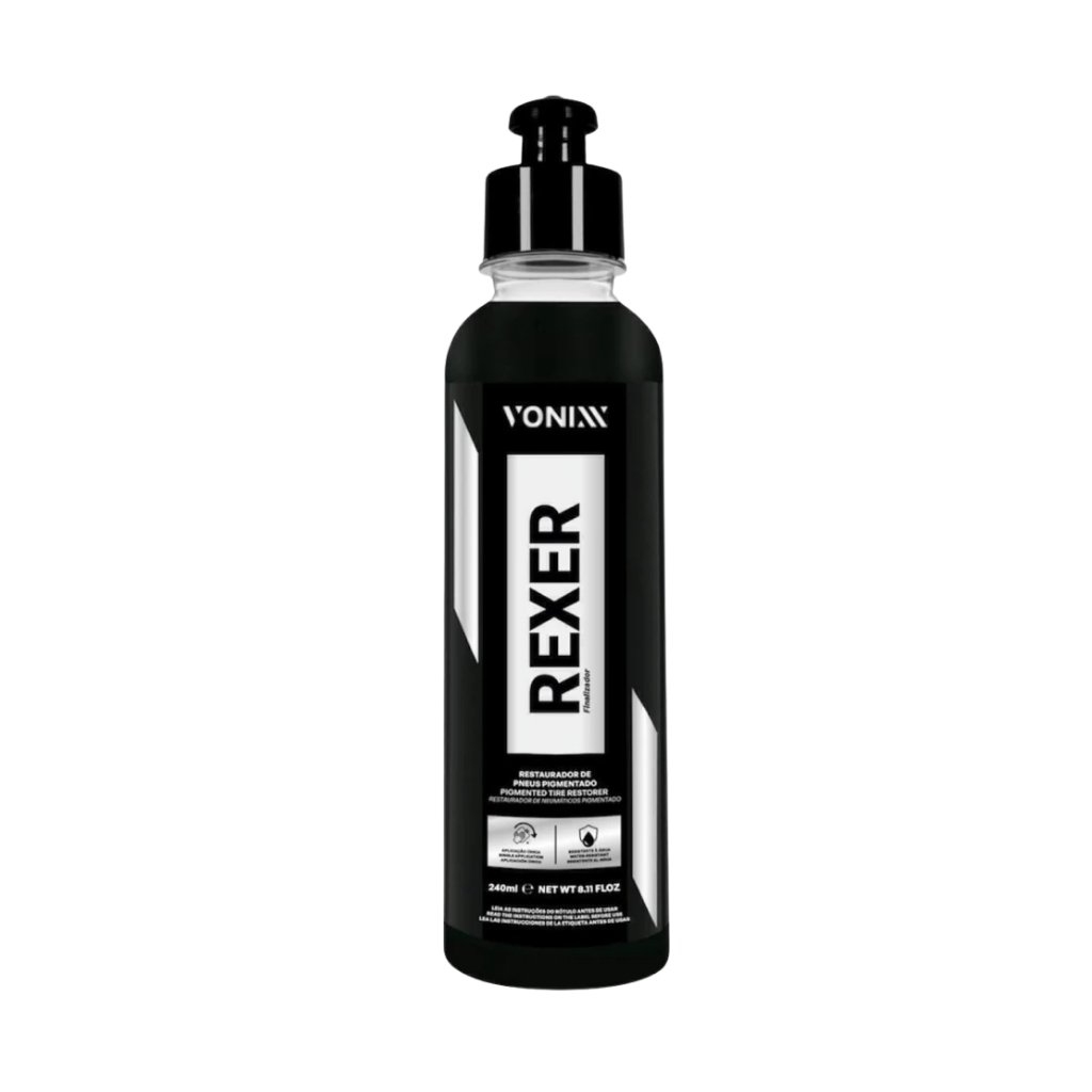 REXER es un restaurador de neumáticos pigmentado y altamente duradero que forma una película seca, brillante y resistente al agua en una sola aplicación.